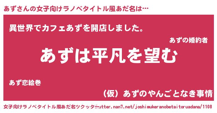 | 男性向けラノベタイトル風あだ名 | 『ダンジョンにあずを求めるのは間違っているだろうか』 |