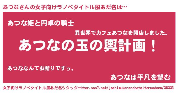 | ヒーロー風カッコイイあだ名 | 『スーパーアツナ』『幻影騎士アツ』 |