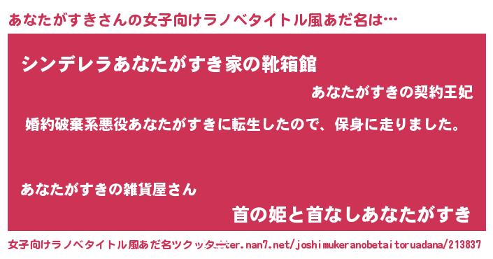 | 男性向けラノベタイトル風あだ名 | 『アナタガスキスレイヤー』 |