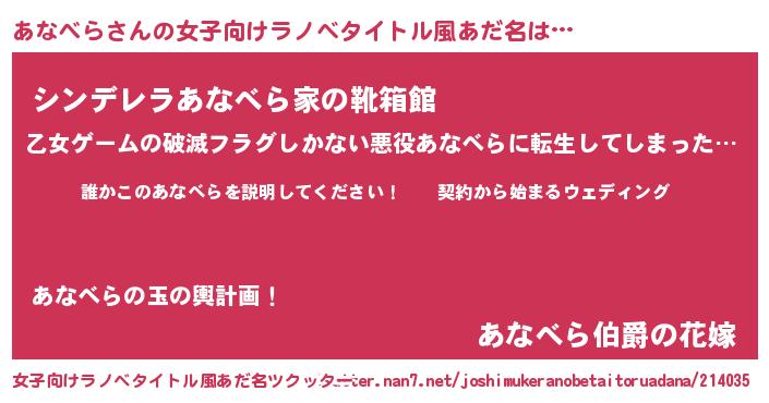 | 男性向けラノベタイトル風あだ名 | 『アナベラアートオンライン』 |