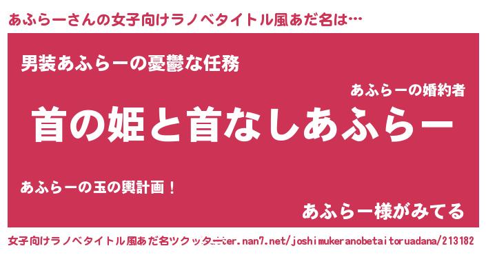 | 男性向けラノベタイトル風あだ名 | 『はたらくあふらーさま!』 |