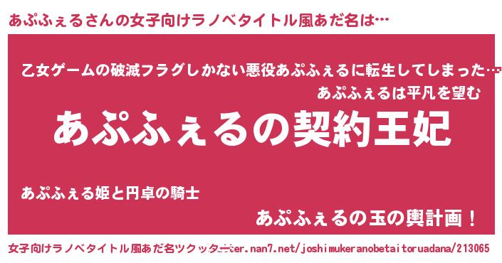 | 胡散臭い通販商品みたいなあだ名 | 『来世でも幸せになれる健康食品…その名も「あぷふぇる」』 |