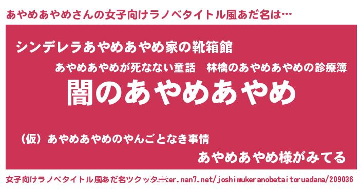 | 男性向けラノベタイトル風あだ名 | 『Re:あやめあやめから始める異世界生活』 |