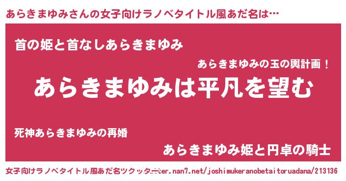 | 胡散臭い通販商品みたいなあだ名 | 『信頼と実績のペンダント…その名も「あらきまゆみ」』 |