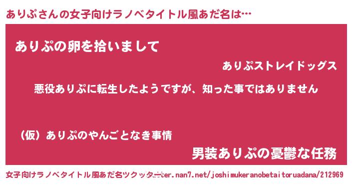 | 胡散臭い通販商品みたいなあだ名 | 『あなたにだけ特別に提供する世界で10本だけ現存している希少なブランデー…その名も「ありぷ」』 |