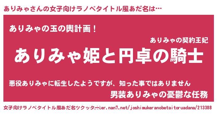 | 胡散臭い通販商品みたいなあだ名 | 『モテモテ間違いなし水晶球…その名も「ありみゃ」』 |