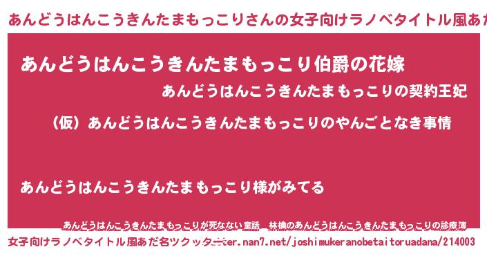 | 男性向けラノベタイトル風あだ名 | 『あんどうはんこうきんたまもっこりの憂鬱』 |