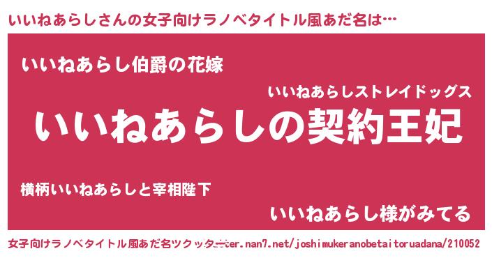 | 男性向けラノベタイトル風あだ名 | 『いいねあらしという概念が存在しない退屈な世界 』 |