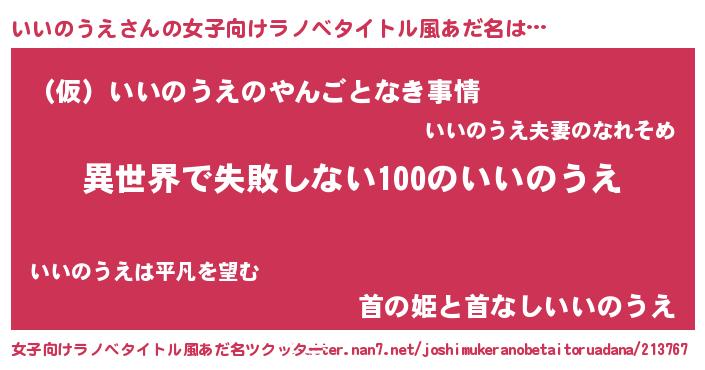 | 胡散臭い通販商品みたいなあだ名 | 『絶対に幸福をもたらす健康食品…その名も「いいのうえ」』 |