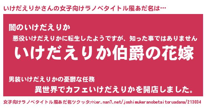 | 意味不明あだ名 | 『いけだえりかフォーエバー』 |