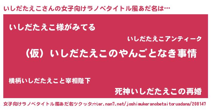 | 男性向けラノベタイトル風あだ名 | 『いしだたえこの憂鬱』 |