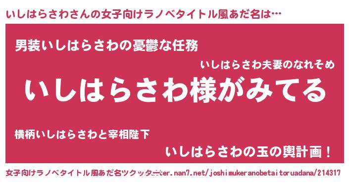 | 男性向けラノベタイトル風あだ名 | 『いしはらさわの嫁は女の子じゃないと思った?』 |