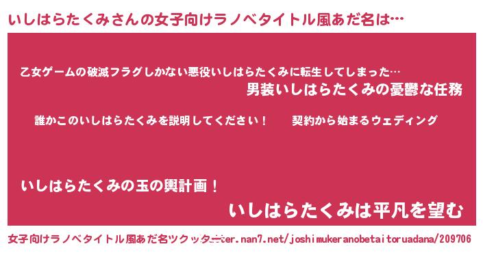 | 胡散臭い通販商品みたいなあだ名 | 『億万長者になれる水晶球…その名も「いしはらたくみ」』 |