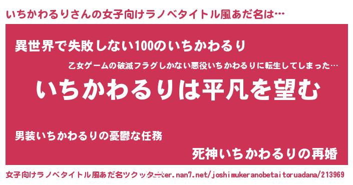| 胡散臭い通販商品みたいなあだ名 | 『信頼と実績のペンダント…その名も「いちかわるり」』 |
