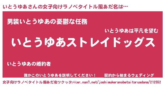 | 胡散臭い通販商品みたいなあだ名 | 『芸能人もオススメする高麗人参…その名も「いとうゆあ」』 |