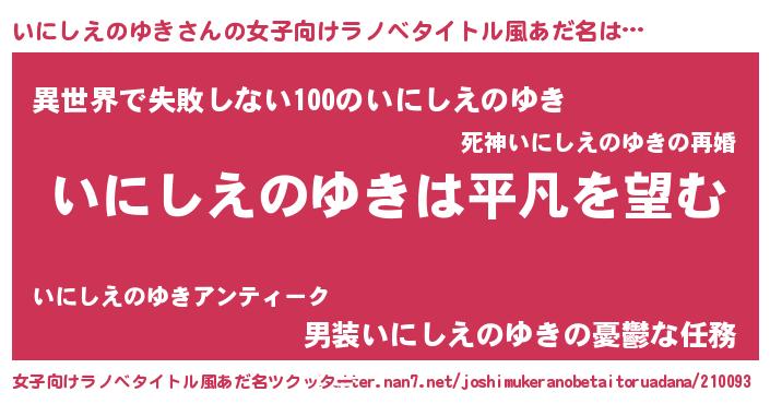 | 胡散臭い通販商品みたいなあだ名 | 『信頼と実績のサプリメント…その名も「いにしえのゆき」』 |