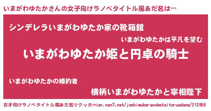| 男性向けラノベタイトル風あだ名 | 『イマガワユタカアートオンライン』 |