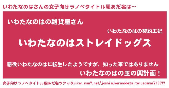 | 男性向けラノベタイトル風あだ名 | 『Re:いわたなのはから始める異世界生活』 |