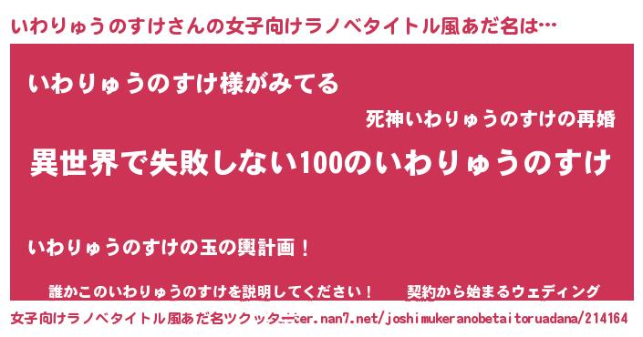 | 男性向けラノベタイトル風あだ名 | 『いわりゅうのすけという概念が存在しない退屈な世界 』 |