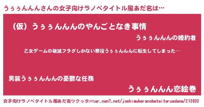 | 意味不明あだ名 | 『住所不定無職うぅぅんんん(4歳)』 |