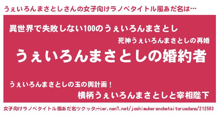 | ファンタジー風あだ名 | 『エターナルウェイロンマサトシー』 |