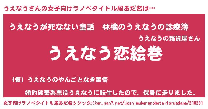 | 男性向けラノベタイトル風あだ名 | 『ノーゲーム・ノーウエナウ』 |