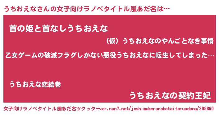 | 男性向けラノベタイトル風あだ名 | 『この素晴らしい世界にうちおえなを!』 |