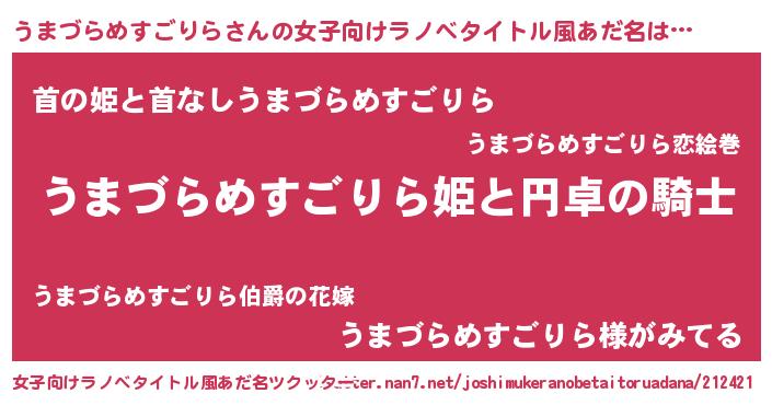 | ヒーロー風カッコイイあだ名 | 『スーパーウマヅラメスゴリラ』 |