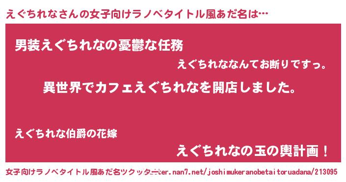 | 男性向けラノベタイトル風あだ名 | 『誰もが恐れるあのえぐちれなが、ぼくの専属メイドになるようです。』 |