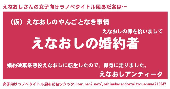 | ファンタジー風あだ名 | 『エターナルエナオシー』『エナフェル』 |
