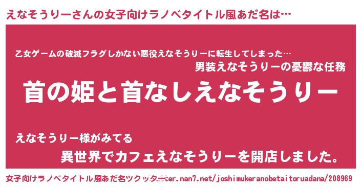 | 男性向けラノベタイトル風あだ名 | 『はたらくえなそうりーさま!』 |