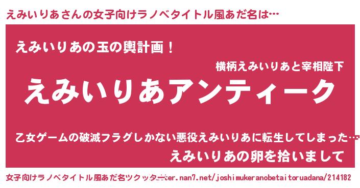 | 肩書あだ名 | 『えみいりあ閣下』『えみいりあ中佐』 |