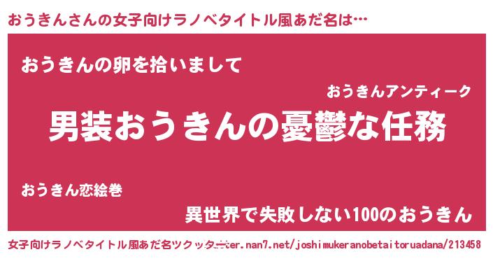 | 男性向けラノベタイトル風あだ名 | 『うちのおうきんが世界を掌握している!』 |