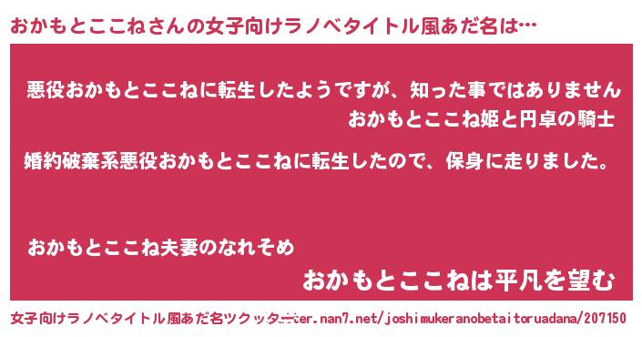 男性向けラノベタイトル風あだ名 | 『転生したらおかもとここねだった件』 |