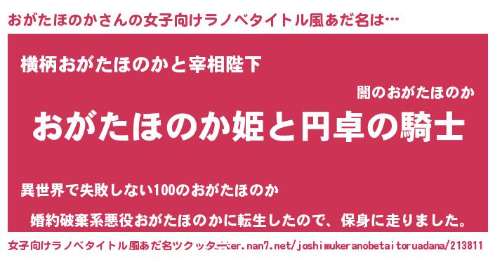 | 男性向けラノベタイトル風あだ名 | 『オガタホノカアートオンライン』 |