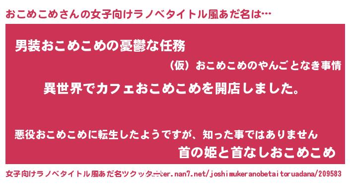 おこめこめさんの女子向けラノベタイトル風あだ名