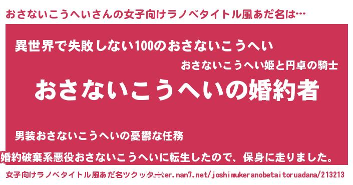 | 胡散臭い通販商品みたいなあだ名 | 『運命の人と巡り会える高級そうな壺…その名も「おさないこうへい」』 |
