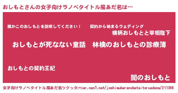 | 意味不明あだ名 | 『住所不定無職おしもと(86歳)』 |
