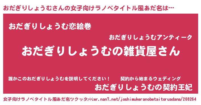 | 男性向けラノベタイトル風あだ名 | 『やはりおだぎりしょうむの青春ラブコメはまちがっている 』 |