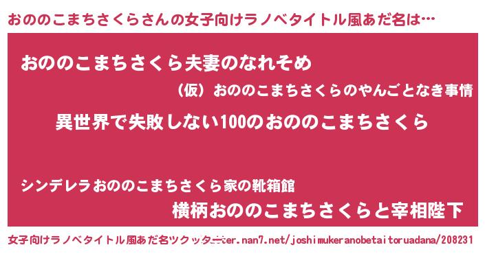 | 意味不明あだ名 | 『永久保存おののこまちさくら』 |