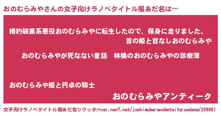 | 意味不明あだ名 | 『住所不定無職おのむらみや(74歳)』 |