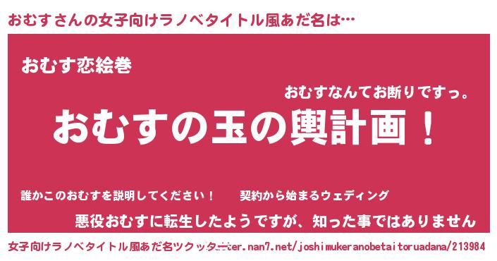 | 男性向けラノベタイトル風あだ名 | 『転生したらおむすだった件』 |