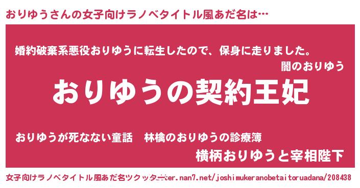 | 男性向けラノベタイトル風あだ名 | 『おりゆうという概念が存在しない退屈な世界 』 |