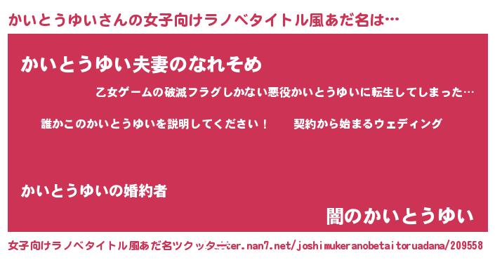 | 男性向けラノベタイトル風あだ名 | 『カイトウユイアートオンライン』 |