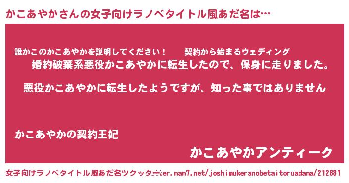 | 男性向けラノベタイトル風あだ名 | 『この素晴らしい世界にかこあやかを!』 |