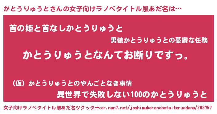 | 意味不明あだ名 | 『自称かとうりゅうと』 |