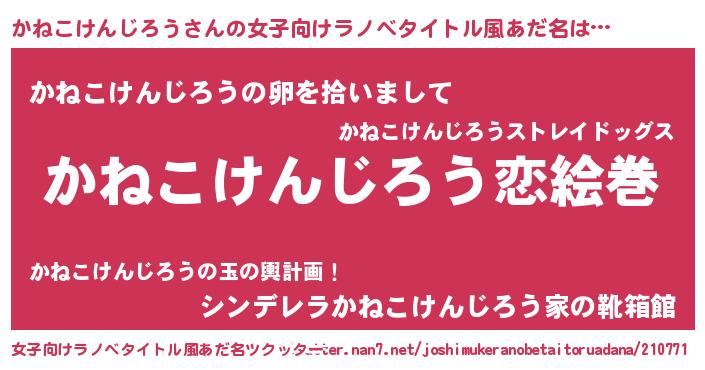 | 男性向けラノベタイトル風あだ名 | 『ノーゲーム・ノーカネコケンジロウ』 |