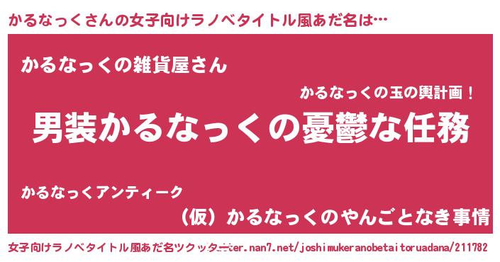 | 男性向けラノベタイトル風あだ名 | 『うちのかるなっくが世界を掌握している!』 |