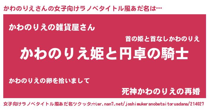 | 男性向けラノベタイトル風あだ名 | 『かわのりえの憂鬱』 |
