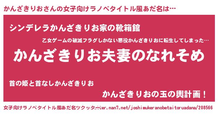 | 男性向けラノベタイトル風あだ名 | 『おまえをオタクにしてやるから、俺をかんざきりおにしてくれ! 』 |